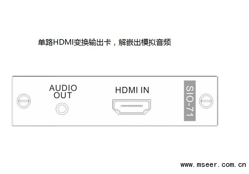 SIO-71 HDMI單通道變換輸出卡,配合SMD主機(jī)使用,采用獨(dú)立板卡設(shè)計,每塊卡支持1路HDMI輸出,解嵌出模擬音頻,支持最高1920x1200P60的數(shù)字高清圖像傳輸.