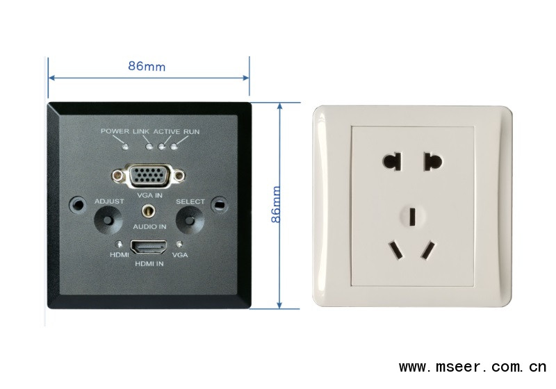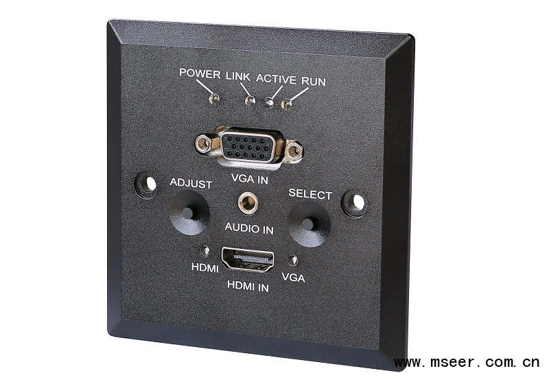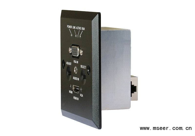 本系列產(chǎn)品包括標(biāo)準(zhǔn)86型接口器模塊(可以墻插和地插形式安裝)及桌面接口器(桌插)兩種類(lèi)型。具備HDMI和VGA兩路輸入自動(dòng)選擇(HDMI優(yōu)先)之功能,并轉(zhuǎn)換成HDbaseT信號(hào)發(fā)送輸出,可通過(guò)單根CAT5電纜將HDMI或VGA的視頻、音頻信號(hào)中的任意1路最遠(yuǎn)發(fā)送至100m遠(yuǎn)的接收端。它可將輸入的模擬視頻及音頻信號(hào)數(shù)字化,實(shí)現(xiàn)數(shù)字高清信號(hào)的遠(yuǎn)距離無(wú)損傳輸,采用運(yùn)端PoL供電技術(shù)、方便安裝布線。
