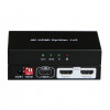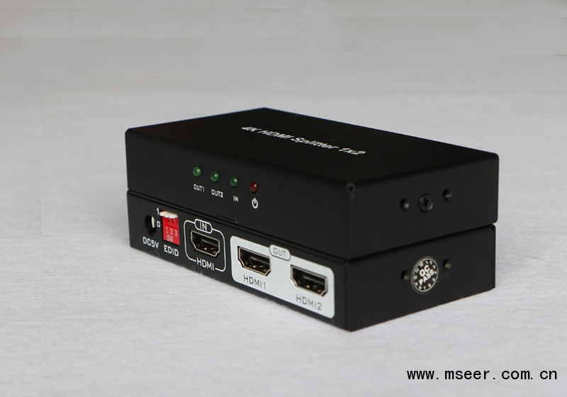 HDMI分配器MH0102,可以將一路HDMI信號分配成若干路同步一致的HDMI信號輸出。且該分配品具有信號緩沖、放大能力,因此對于輸入的HDMI信號,可以通過串接的方法實現(xiàn)超過40米的遠距離傳輸(擴展);通過堆疊的方法,可以增加HDMI輸出端口的數(shù)量。